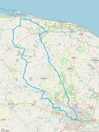 From Chapelfield Gardens (at the top of Grapes Hill in Norwich) to Wiveton Cafe on the north Norfolk coast.